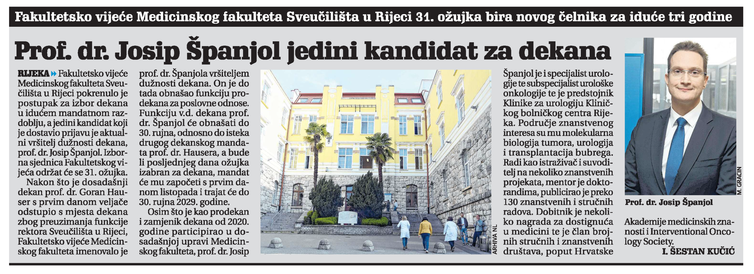 Fakultetsko vijeće, na VII. elektroničkoj sjednici održanoj od 6. – 10. veljače 2026. donosi dana 10. veljače 2026. godine Odluku o pokretanju postupka izbora dekana Sveučilišta u Rijeci, Medicinskog fakulteta za mandatno razdoblje od 01. listopada 2026. do 30. rujna 2029. i imenovanju Povjerenstva za izbor dekana.