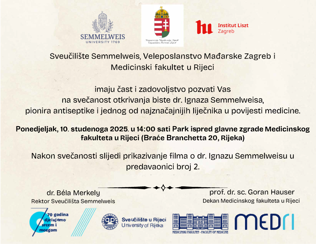 Zadovoljstvo nam je pozvati Vas na otvaranje izložbe pod naslovom MALI NEPRETENCIOZNI POVIJESNOMEDICINSKI VODIČ RIJEKOM koje ćemo upriličiti na Korzu, ispred Gradske vijećnice, u četvrtak, 6. studenoga 2025., u 9:30. Izložba predstavlja izbor fragmenata istoimene knjižice, koja će uskoro biti predstavljena na Medicinskom fakultetu u Rijeci, a koja na popularan način, kombinirajući ležeran informativan tekst […]