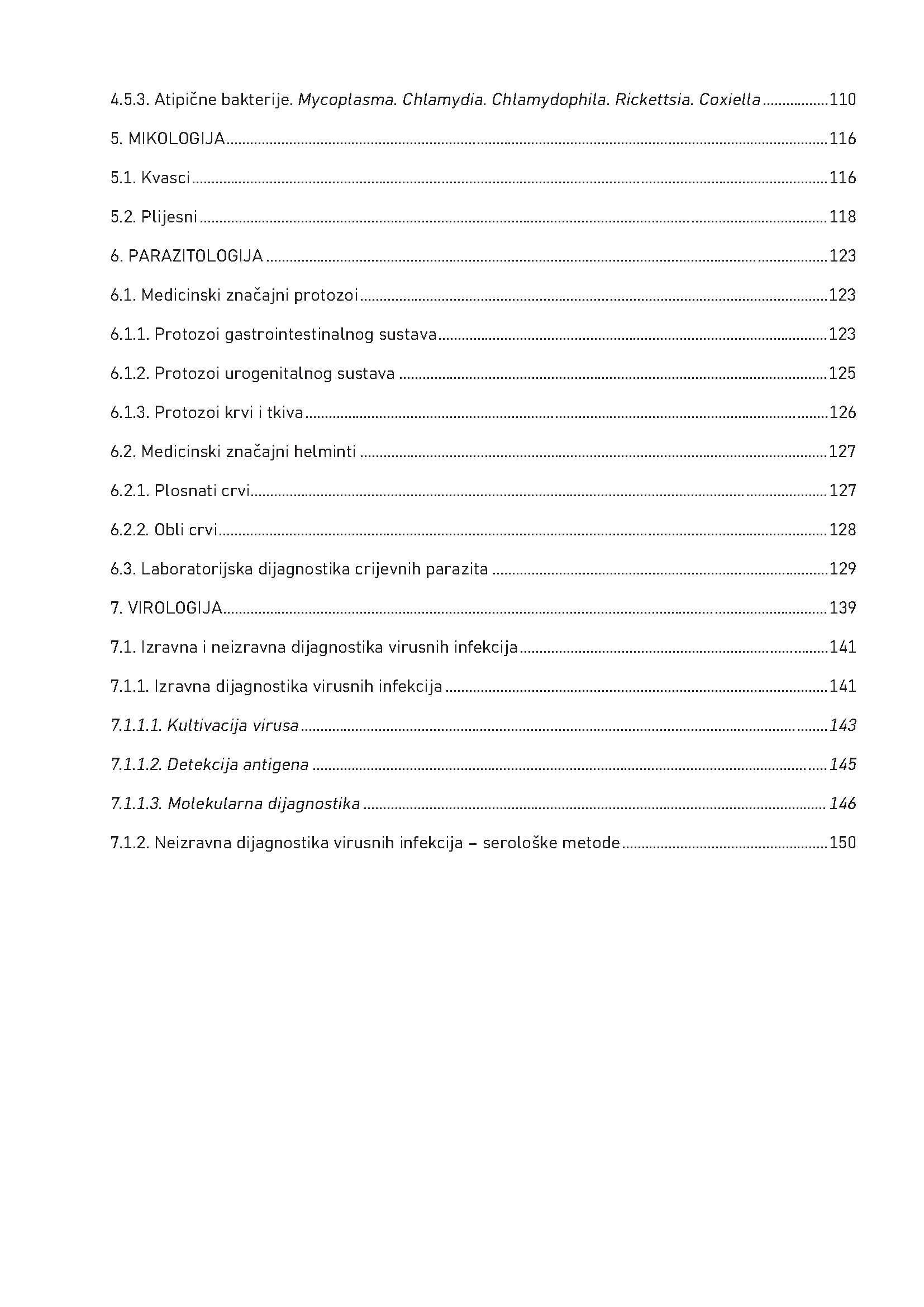 savladavanje nastavnog programa u potpunosti. Priručnik obrađuje sva relevantna područja medicinske mikrobiologije i parazitologije, pa se nakon uvodnog poglavlja o biološkoj sigurnosti i biozaštiti nižu poglavlja