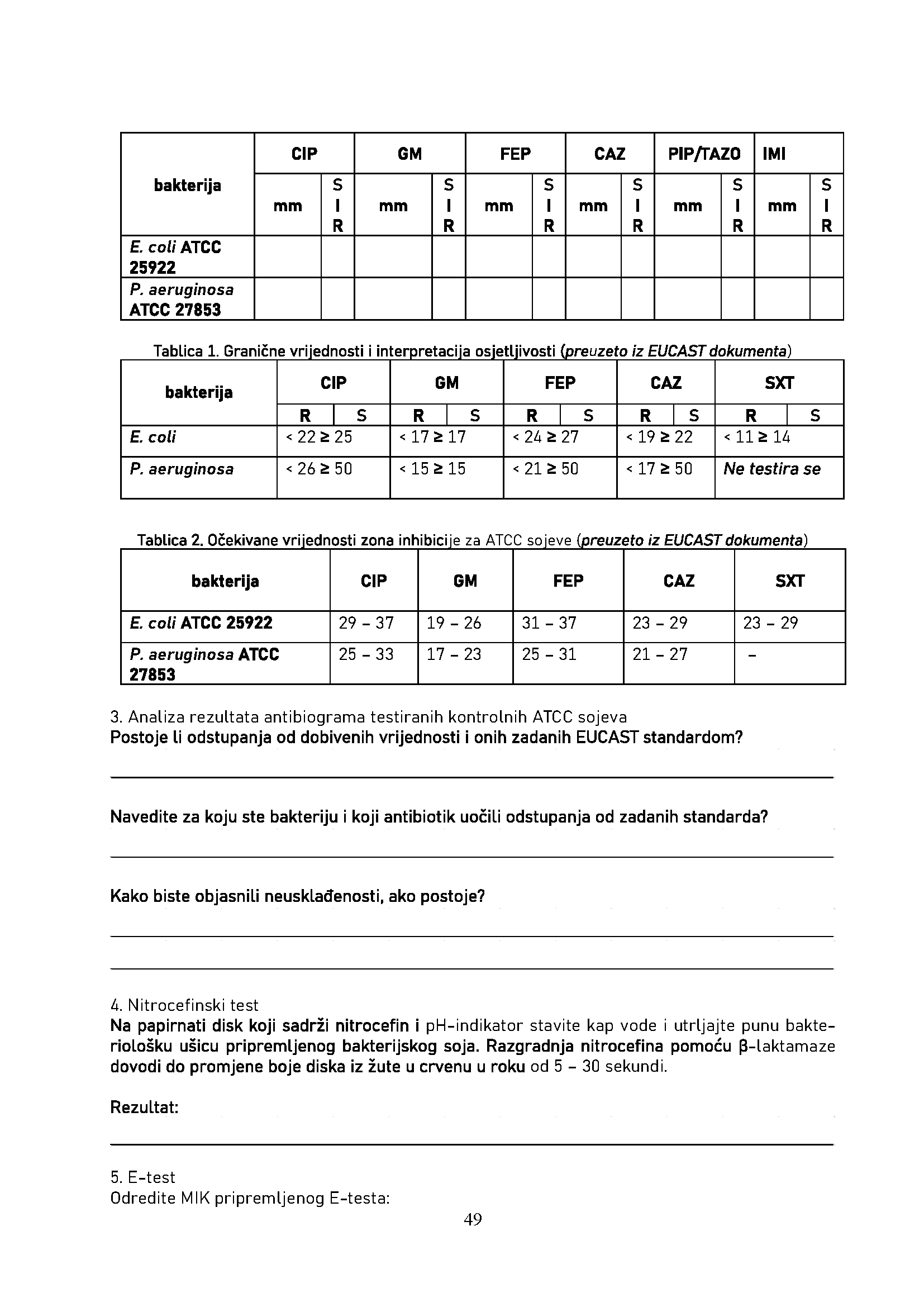 posvećena općoj i medicinskoj bakteriologiji, medicinskoj virologiji, medicinskoj parazitologiji i mikologiji. Predložene djelo odgovara u potpunosti predmetu za koji se predlaže. Poglavlja se sastoje od teorijskog dijela koja su strukturirana tako da se u početku studentima daje teorijski uvod nakon čega slijede metodološke upute koje omogućuju izradu vježbovnih zadataka koji se nalaze na kraju poglavlja i završavaju pitanjima za provjeru znanja studenata vezanim uz svaku pojedinu nastavnu tematsku jedinicu. …” prof. dr. sc. Jasmina Vraneš, dr. med.