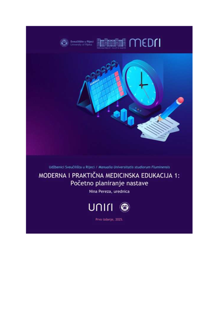 Urednica: Autori: Sažetak: Nakladnička cjelina Moderna i praktična medicinska edukacija, udžbenici Sveučilišta u Rijeci, predstavlja prvi suvremeni izdavački pothvat u području metodologije medicinske edukacije u Republici Hrvatskoj i širim prostorima. Sastoji se od pet digitalnih udžbenika, od kojih svaki pokriva jedno područje važno za svakog medicinskog nastavnika, uključujući početno planiranje nastave, odabir metode učenja, izradu […]
