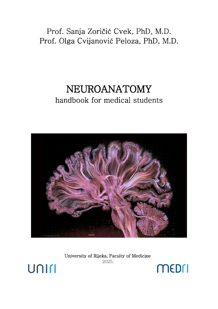 Autorice: Sažetak: Prijavljeno izdanje pod naslovom “Neuroanatomy” namjenjeno je prvenstveno studentima integriranog prediplomskog i diplomskog studija medicina na engleskom jeziku na drugoj godini studija. U izdanju je opisana morfologija organa središnjeg živčanog sustava te funkcionalna organizacija sive i bijele tvari pojedinih dijelova središnjeg živčanog sustava. U drugom dijelu izdanja opisani su funkcionalni sustavi središnjeg živčanog […]